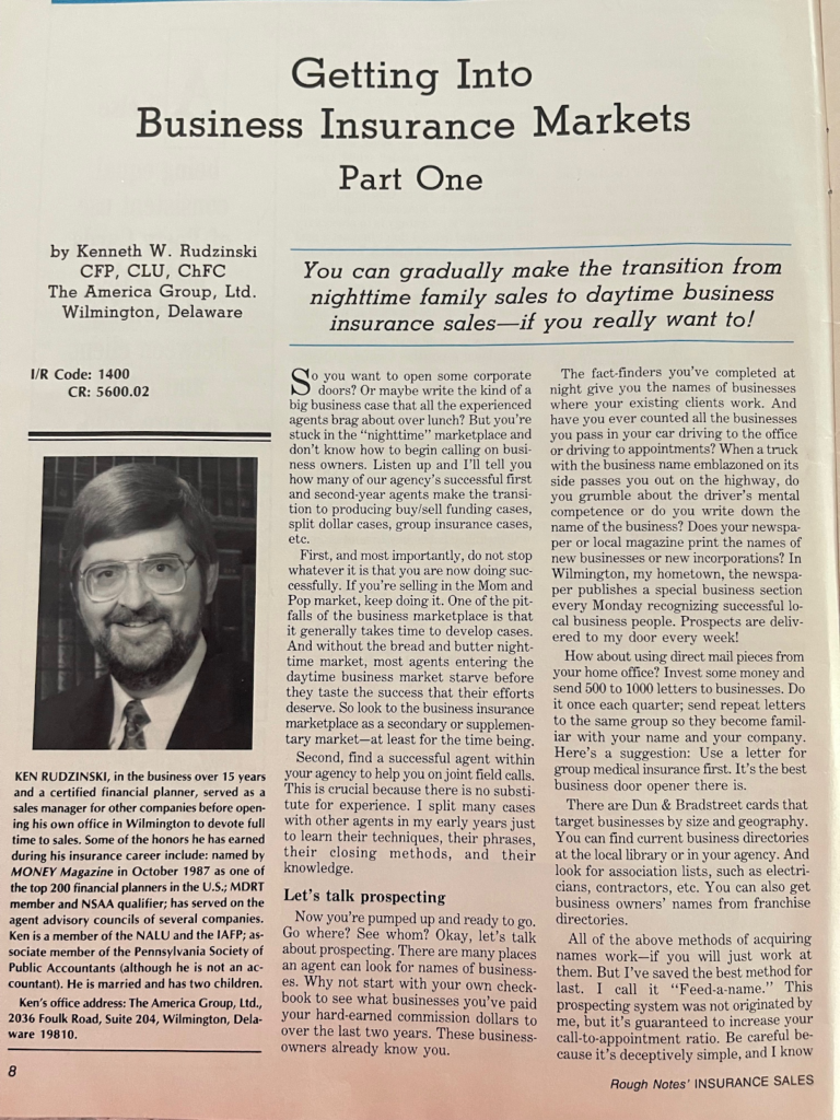 When I think back to my early years in the insurance business, one lesson stands out above all else: success comes from preparation, persistence, and learning from others. I began my career in the financial services industry in 1973 with Lincoln National Sales Corp., and eventually opened my own practice, The America Group, in Wilmington, Delaware. Over the years, I discovered that transitioning from family-oriented sales to the business insurance market required focus, strategy, and a willingness to learn.